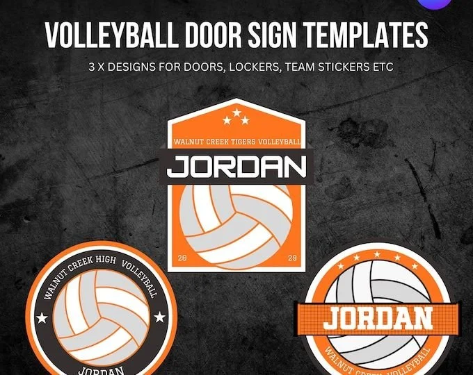 Make every locker and bedroom door uniquely theirs. These custom volleyball signs are printed with bold, colorful graphics and your player's name — perfect for decorating tournament hallways, locker bays, or bedroom doors before a big game.