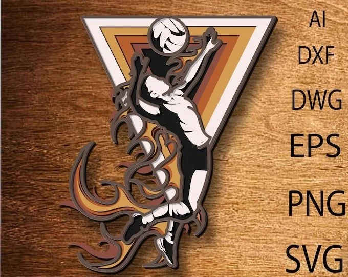 This isn't just a sports piece — it's a work of art. An intricate mandala blooms from the form of a volleyball in rich layered wood, creating a stunning 3D wall piece that works in a player's bedroom, a sports-themed living room, or a coach's office.