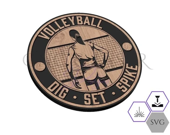 Celebrate the athlete in your life with this beautifully engraved volleyball player silhouette on a rich wood round. A perfect locker room gift, team award, or end-of-season keepsake.